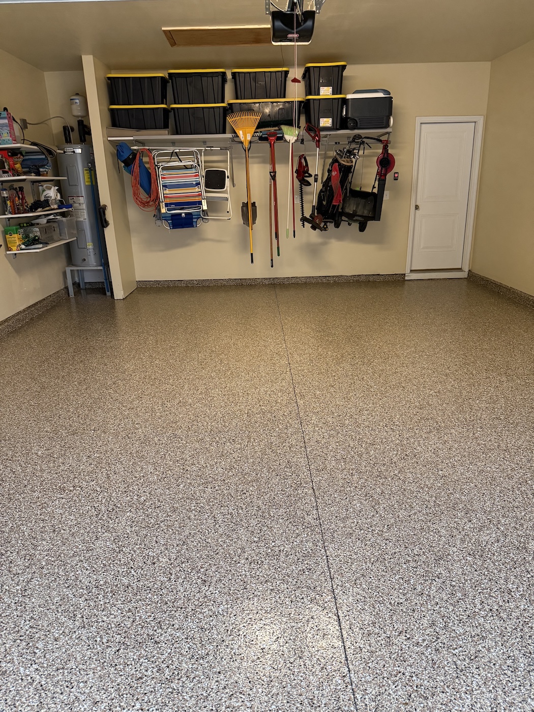 Monkey Bars shelving was the key to getting totes and storage bins up off the floor, while still allowing quick access thanks to adjustable shelves. Beneath the shelving, we created space to hang additional items, keeping everything organized and within reach. To tie it all together, we installed durable flooring that makes cleaning and maintenance a breeze. The end result is a well-organized garage that stays open, flexible, and car-friendly—exactly what this Surfside, SC homeowner needed.